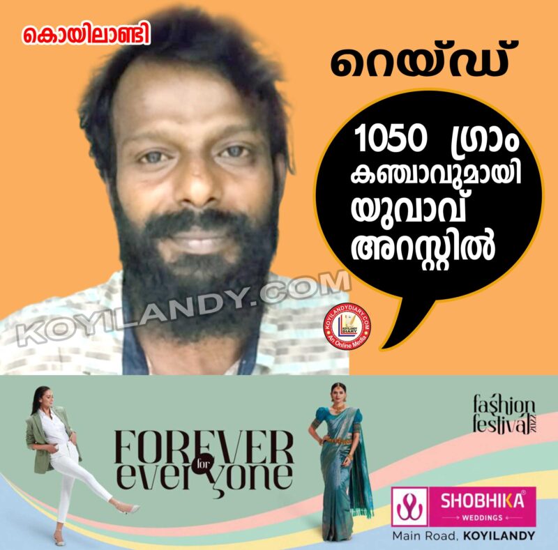 1050 ഗ്രാം കഞ്ചാവുമായി പിടിയിൽ.. കൊയിലാണ്ടി: നെല്ലിക്കോട്ടുകുന്നുമ്മൽ കഞ്ചാവ് വിൽപ്പന കേന്ദ്രത്തിൽ റെയ്ഡ്. യുവാവിനെ പിടികൂടി മറ്റുള്ളവർ ഓടി രക്ഷപ്പെട്ടു. വീട്ടിൽ സൂക്ഷിച്ച കഞ്ചാവുമായാണ് യുവാവിനെ പിടികൂടിയത്. പന്തലായനി നെല്ലിക്കോട്ടു കുന്നുമ്മൽ മുഹമ്മദ് റാഫി (39) യെയാണ് 1050 ഗ്രാം കഞ്ചാവുമായി പിടിയിലായത്. ഇവിടെ നിന്നും, കഞ്ചാവ് തൂക്കാൻ ഉപയോഗിക്കുന്ന വെയിംഗ് മെഷീനും 24000 രൂപയും പിടികൂടിയിട്ടുണ്ട്. റെയ്ഡ് നടക്കുന്ന സമയത്ത് പത്തിലധികം പേർ ഉണ്ടായിരുന്നതായാണ് അറിയുന്നത് എല്ലാവരും ഒടി രക്ഷപ്പെടുകയായിരുന്നു. വീട്ടുടമസ്ഥനായ റാഫിയെ പിന്നീട് പോലീസ് തന്ത്രപൂർവ്വം കുടുക്കുകയായിരുന്നു.