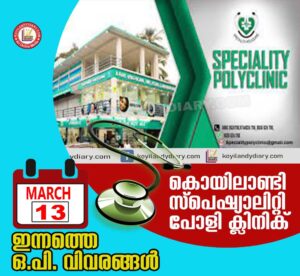 കൊയിലാണ്ടി സ്പെഷ്യാലിറ്റി പോളിക്ലിനിക്കിലെ ഇന്നത്തെ ഒ.പി. വിവരങ്ങൾ