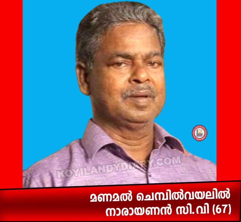 കൊയിലാണ്ടി: മണമൽ ചെമ്പിൽവയലിൽ നാരായണൻ സിവി (67) നിര്യാതനായി. ഭാര്യ: പരേതയായ ശാന്ത. മക്കൾ: അഭിലാഷ് സിവി (ഇലക്ട്രീഷ്യൻ), അഷിത സിവി (ഒ.എ. പന്തലായനി ബ്ലോക്ക്). മരുമക്കൾ:...