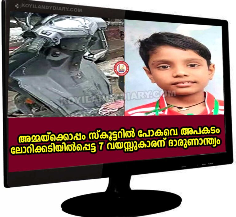 തൃശൂർ: ലോറിക്കടിയിലേക്ക് വീണ് 7 വയസ്സുകാരന് ദാരുണാന്ത്യം.. പെരിഞ്ഞനത്ത് അമ്മക്കൊപ്പം സ്കൂട്ടറിൽ പോകവെയാണ് മറ്റൊരു വാഹനമിടിച്ച് ലോറിക്കടിയിലേക്ക് വീണ് ഏഴ് വയസുകാരൻ ദാരുണമായി മരണപ്പെട്ടത്. പെരിഞ്ഞനം വെസ്റ്റ്...