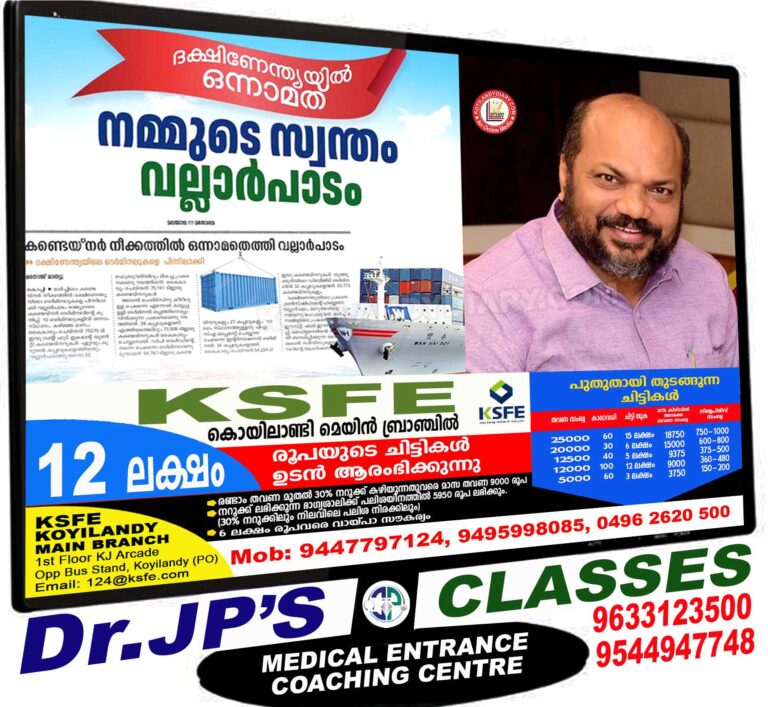 ദക്ഷിണേന്ത്യയിൽ കണ്ടെയിനർ നീക്കത്തിൽ ഒന്നാം സ്ഥാനം കരസ്ഥമാക്കി വല്ലാർപാടം കണ്ടെയിനർ ടെർമിനൽ. ചെന്നൈ ഉൾപ്പെടെയുള്ള 10 പ്രമുഖ ടെർമിനലുകളോട് മത്സരിച്ചാണ് ഈ നേട്ടമെന്ന് മന്ത്രി പി രാജീവ്...