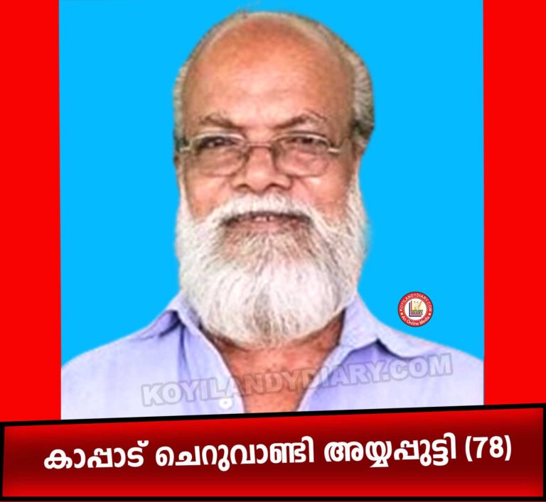 കൊയിലാണ്ടി: കാപ്പാട് ചെറുവാണ്ടി അയ്യപ്പുട്ടി (78) നിര്യാതനായി. ഭാര്യ: ശാരദ. മക്കൾ: ശ്രീജ, മുരളി, ശ്രീജിത്ത്, ബിജു. മരുമക്കൾ: ബാബുരാജ്, സംഗീത, ശ്രീജിന. സംസ്കാരം ചൊവ്വാഴ്ച.