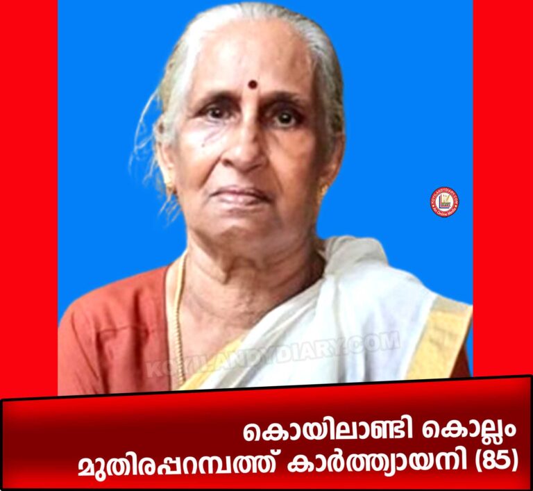 കൊയിലാണ്ടി ഗീതാ സ്റ്റോർ ഉടമ പരേതനായ രാമൻ ചെട്ട്യാരുടെ ഭാര്യ കൊല്ലം മുതിരപ്പറമ്പത്ത് കാർത്ത്യായനി (85) നിര്യാതയായി. ശവസംസ്ക്കാരം: 12 മണിക്ക് വീട്ടുവളപ്പിൽ. കൊയിലാണ്ടിയിലെ പ്രമുഖ വസ്ത്ര...