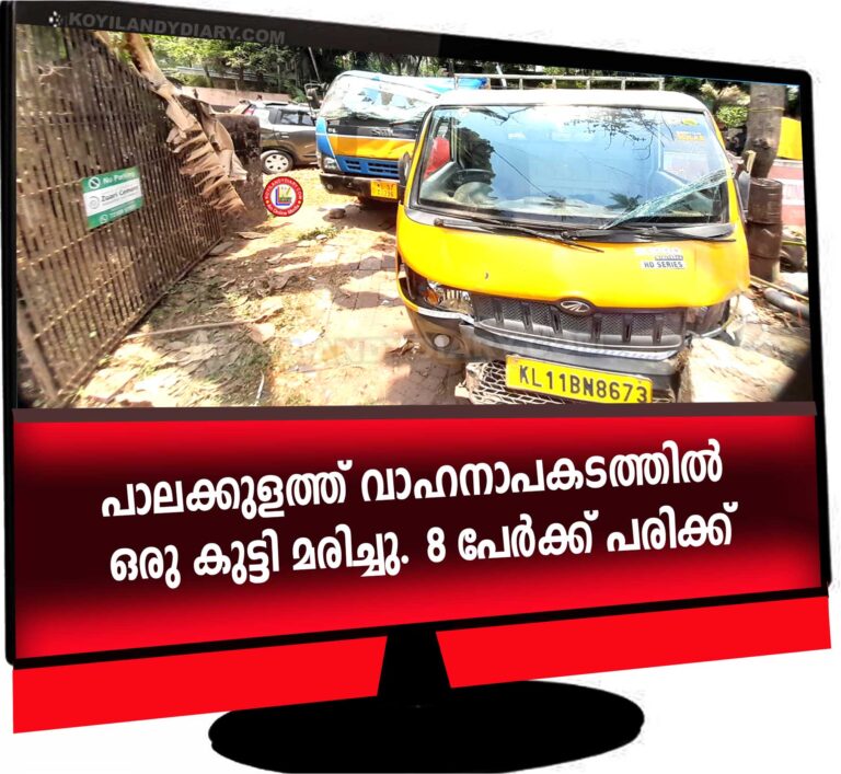കൊയിലാണ്ടി പാലക്കുളത്ത് നിർത്തിയിട്ട കാറിന് പിറികിൽ ലോറി ഇടിച്ചുണ്ടായ അപകടത്തിൽ 2 വയസ്സുകാരൻ മരിച്ചു. 8 പേർക്ക് ഗുരുതരമായി പരിക്ക്. വടകര ചോറോട് സ്വദേശിയായ മുഹമ്മദ് ഹിസാൻ...