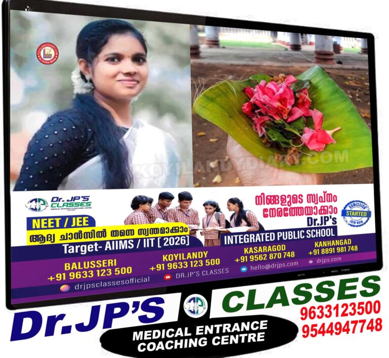 പൂക്കാട്: പല്യേക്കണ്ടി ഗീത (54) നിര്യാതയായി. ഭർത്താവ്: പരേതനായ ശിവദാസൻ (പൊന്നു) മക്കൾ ഡോ:ശരണ്യ, ധനേഷ് (പൊയിൽകാവ് ഹയർ സെക്കൻഡറി സ്കൂൾ). മരുമക്കൾ: അൻവിൻ (ജർമ്മനി), അമൃത....