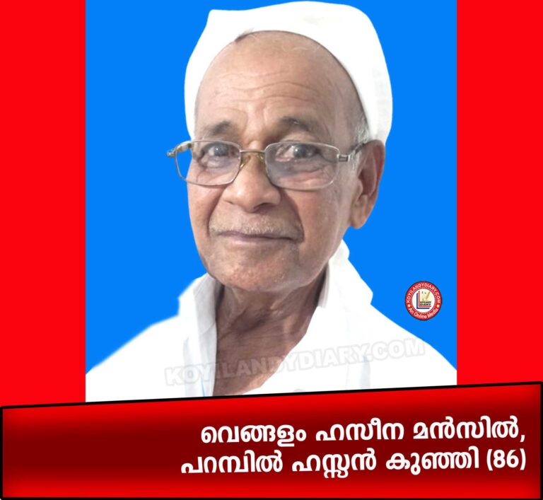 വെങ്ങളം: ഹസീന മൻസിൽ താമസിക്കും പറമ്പിൽ ഹസ്സൻകുഞ്ഞി (86) നിര്യാതനായി. ഭാര്യ: ആയിഷ. മക്കൾ: അബ്ദുൾ നാസർ (ദുബൈ), കോയ മോൻ (ഫാഷൻ വേൾഡ് റെഡിമെയ്ഡ്സ് -...