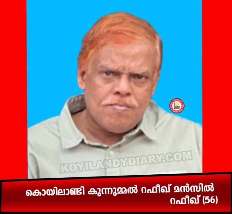 കൊയിലാണ്ടി കുന്നുമ്മൽ റഫീഖ് മൻസിൽ റഫീഖ് (56) നിര്യാതനായി. പരേതരായ മൊയ്തീൻകുട്ടി ഹാജിയുടെയും ഫാത്തിമ ഹജ്ജുമ്മയുടെയും മകനാണ്. സഹോദരങ്ങൾ: കെ.കെ കുഞ്ഞമ്മദ്, കെ.കെ ഇബ്രാഹിം...