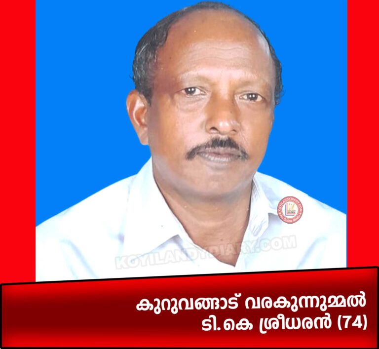 കൊയിലാണ്ടി: കുറുവങ്ങാട് വരകുന്നുമ്മൽ ടി.കെ. ശ്രീധരൻ (74) നിര്യാതനായി. ഭാര്യ: കമലാക്ഷി. മക്കൾ: ഷാജി, ഷൈജു. മരുമക്കൾ: രജിഷ്മ, ഹരിത.
