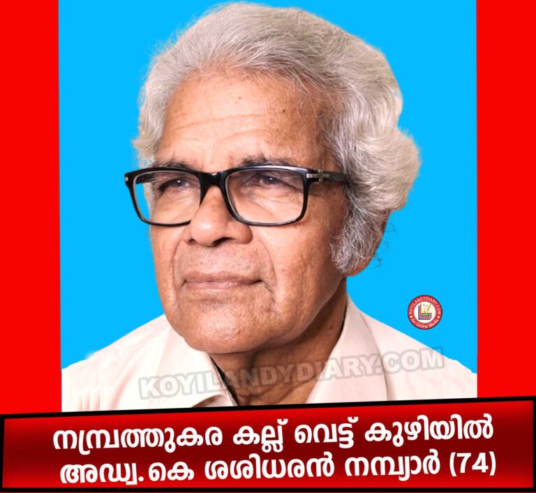 കൊയിലാണ്ടി: നമ്പ്രത്തുകര കല്ല് വെട്ട് കുഴിയിൽ അഡ്വ.കെ ശശിധരൻ നമ്പ്യാർ (74) നിര്യാതനായി. കെ.എസ്.ആർ.ടി.സി റിട്ട. സൂപ്രണ്ടായിരുന്നു. ഭാര്യ: മീരാ നമ്പ്യാർ. മകൾ: നന്ദ നമ്പ്യാർ, മരുമകൻ:...