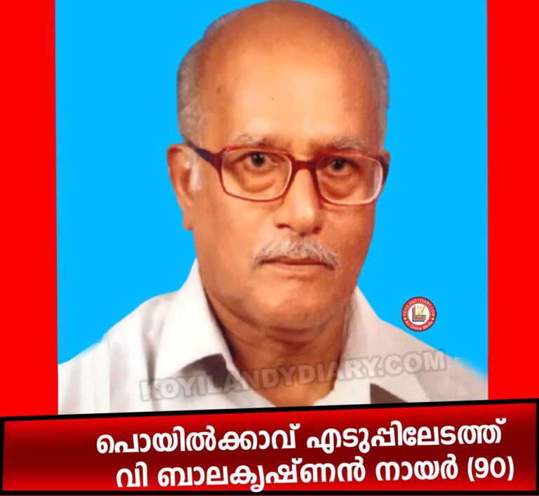 പൊയിൽക്കാവ് എടുപ്പിലേടത്ത് വി ബാലകൃഷ്ണൻ നായർ (90) (റിട്ട. ഡെപ്യൂട്ടി കമ്മിഷണർ സെയിൽസ് ടാക്സ്) നിര്യാതനായി. ഭാര്യ: മൊടത്തേടത് കമലാക്ഷി അമ്മ. മക്കൾ: അരുണൻ (റിട്ട. ഡെപ്യൂട്ടി കമ്മീഷണർ...