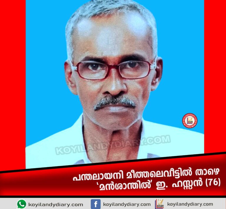 കൊയിലാണ്ടി: പന്തലായനി മീത്തലെ വീട്ടിൽതാഴെ 'മൻശാന്തിൽ' ഇ. ഹസ്സൻ (76) നിര്യാതനായി. (എവർവൈറ്റ് ഡ്രൈക്ലീനിംഗ്, ഈസ്റ്റ് റോഡ്,കൊയിലാണ്ടി). ഭാര്യ: നബീസ (റിട്ട. എ.ആർ ഓഫീസ്, കൊയിലാണ്ടി). മക്കൾ:...