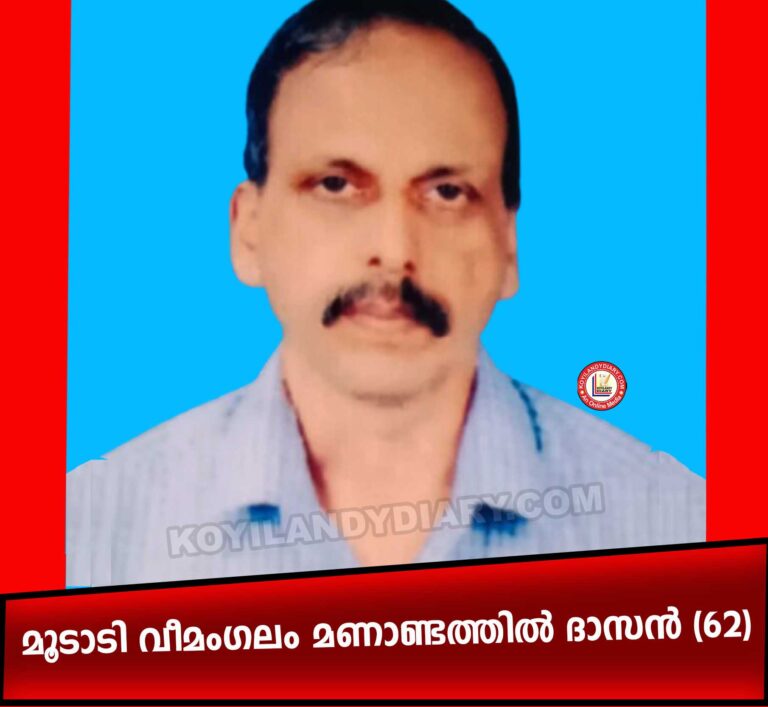 കൊയിലാണ്ടി: മൂടാടി വീമംഗലം മണാണ്ടത്തിൽ ദാസൻ (62) നിര്യാതനായി. ഭാര്യ: സോമലത. മക്കൾ: ദിൽസന്ദീപ്, ദിൽഷൈൻ. സംസ്കാരം വീട്ടുവളപ്പിൽ.
