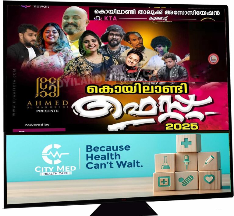 . കൊയിലാണ്ടി താലൂക്ക് അസോസിയേഷൻ കുവൈത്ത് വാർഷിക മെഗാ പരിപാടി അഹ്മദ് അൽ മഗ്രിബി കൊയിലാണ്ടി ഫെസ്റ്റ് 2025 ഒക്ടോബർ 24ന് നടക്കും. വെള്ളി വൈകിട്ട് അഞ്ച്...