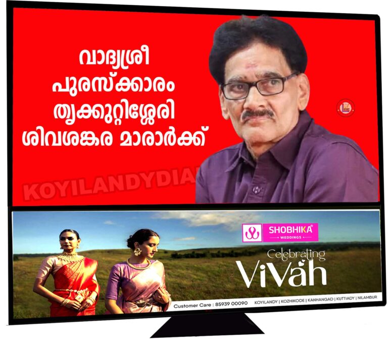 ചേമഞ്ചേരി: കേരള ക്ഷേത്രവാദ്യകലാ അക്കാദമിയുടെ ഈ വർഷത്തെ വാദ്യശ്രീ പുരസ്ക്കാരത്തിന് തൃക്കുറ്റിശ്ശേരി ശിവശങ്കര മാരാരെ തിരഞ്ഞെടുത്തു. വാദ്യകലാ ജീവിതത്തിൻ്റെ അഞ്ച് പതിറ്റാണ്ട് പിന്നിടുന്ന ശിവശങ്കര മാരാരുടെ വാദ്യരംഗത്തെ പ്രവർത്തനം...