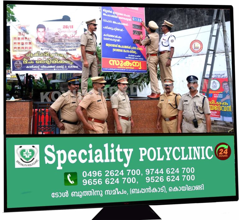 കൊയിലാണ്ടി: വർദ്ധിച്ചുവരുന്ന വാഹനാപകടത്തിനെതിരെ ട്രാഫിക് പോലീസ് ബോധവൽക്കരണ ബോർഡ് സ്ഥാപിച്ചു. കോഴിക്കോട് റൂറൽ ജില്ലാ പോലീസ് മേധാവിയുടെ നിർദ്ദേശപ്രകാരം കൊയിലാണ്ടി ട്രാഫിക് യൂണിറ്റ് ആണ് പ്രസ്തുത ബോർഡ്...