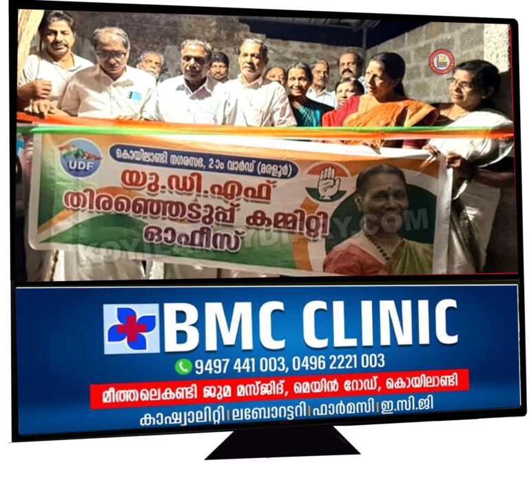 . കൊയിലാണ്ടി: നഗരസഭ മരളൂർ 2-ാം വാർഡ് യുഡിഎഫ് തെരഞ്ഞെടുപ്പ് കമ്മിറ്റി ഓഫീസ് മുൻ നഗരസഭ കൗൺസിലർ ടി. കെ. ഗോപാലൻ ഉദ്ഘാടനം ചെയ്തു. തെരഞ്ഞെടുപ്പ് കമ്മിറ്റി...