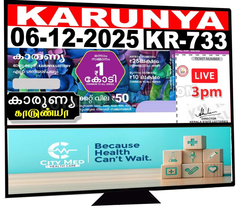 . കാരുണ്യ കെആർ- 733 ലോട്ടറി ഫലം ഇന്ന്. എല്ലാ ശനിയാഴ്ചകളിലും ഉച്ചയ്ക്ക് മൂന്ന് മണിക്കാണ് നറുക്കെടുപ്പ് നടക്കുക. ഒന്നാം സമ്മാനം ഒരു കോടി രൂപയാണ്. രണ്ടാം...