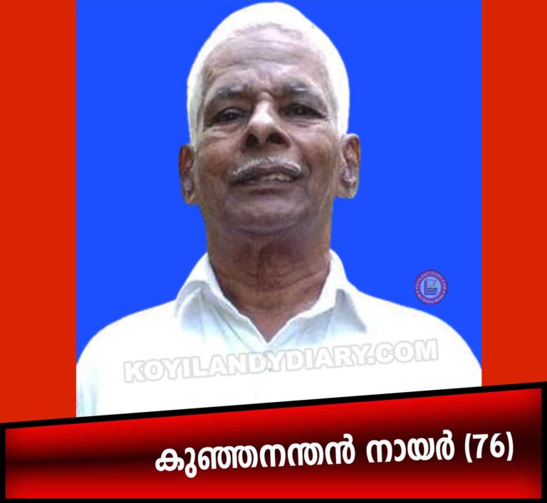 കൊയിലാണ്ടി: പന്തലായനി തെക്കയിൽ താഴെ താമസിക്കും വെള്ളിലാട്ട് കുഞ്ഞനന്തൻ നായര് (76) നിര്യാതനായി. സംസ്കാരം: ബുധനാഴ്ച ഉച്ചക്ക് 12 മണിക്ക് വീട്ടുവളപ്പിൽ. ഭാര്യ: ജാനകി. മക്കൾ: രേണുക,...