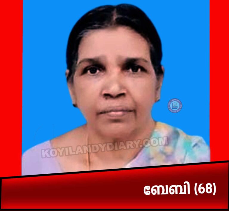 . കൊയിലാണ്ടി അരങ്ങാടത്ത് കളരിക്കണ്ടി ബേബി (68) നിര്യാതയായി. ഭർത്താവ്: വേണുഗോപാലൻ (അർച്ചന പൂജാ സ്റ്റോർ കൊയിലാണ്ടി). മക്കൾ: ബ്രിജില, പരേതനായ ബ്രിജിത്ത്. മരുമക്കൾ: സന്തോഷ് (നന്മണ്ട),...