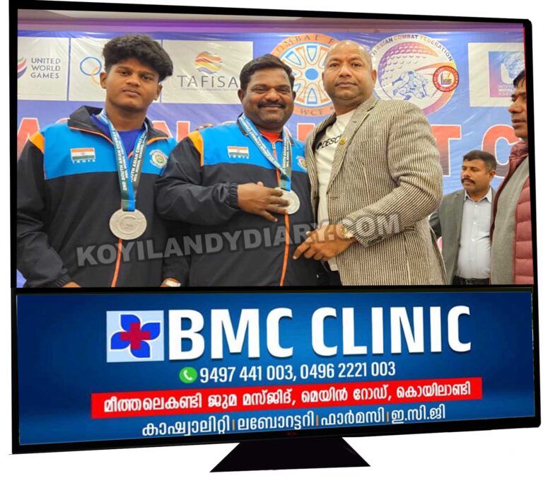 . കൊയിലാണ്ടി: കോമ്പാറ്റ് സൗത്ത് ഏഷ്യൻ ഗുസ്തി മത്സരത്തിൽ മെഡൽ നേടി താരങ്ങളായി അച്ഛനും മകനും. എരമംഗലം കോറോത്ത് താമസിക്കും പൂളയിൽ (നന്മണ്ട) അബിനേഷും, മകൻ അദ്രിനാഥുമാണ്...