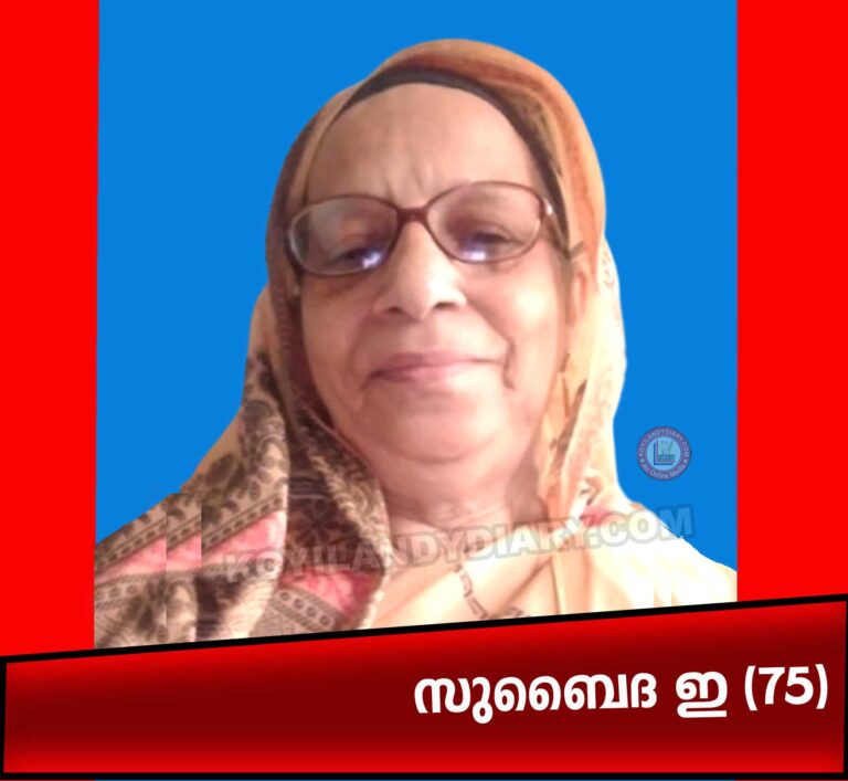 . കൊയിലാണ്ടി: കുറുവങ്ങാട് സിത്താരയിൽ സുബൈദ ഇ (75) നിര്യാതയായി. ഖബറടക്കം വ്യാഴാഴ്ച രാവിലെ 10:30 കുറുവങ്ങാട് ജുമാമസ്ജിദിൽ. ഭർത്താവ്: പരേതനായ എളാച്ചിക്കണ്ടി സീതി. മക്കൾ: ഷാഹിദ,...
