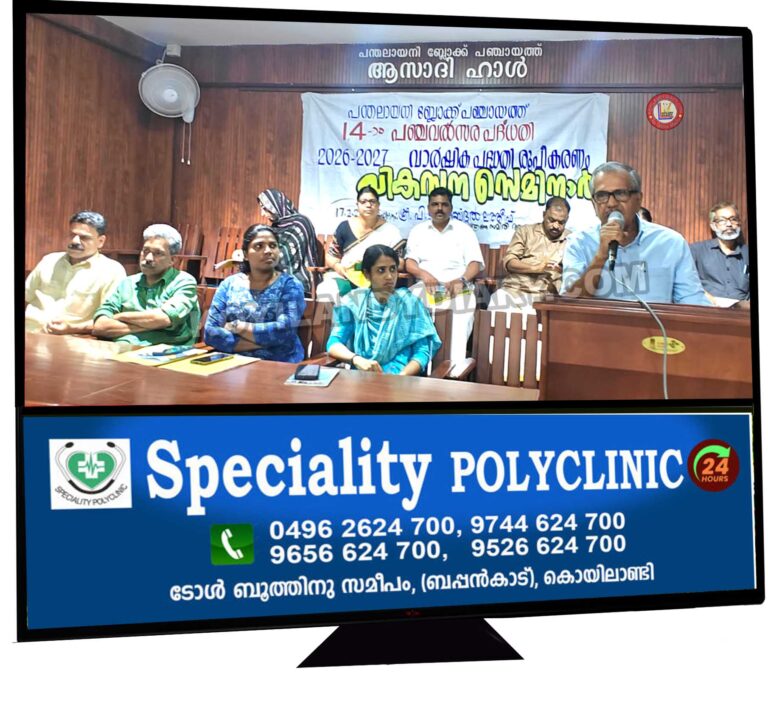 . കൊയിലാണ്ടി: പന്തലായനി ബ്ലോക്ക് പഞ്ചായത്ത് വികസന സെമിനാർ ജില്ലാ ആസൂത്രണ സമിതി അംഗം പ്രൊഫ. പി ടി. അബ്ദുൾ ലത്തീഫ് ഉദ്ഘാടനം ചെയ്തു. പ്രസിഡണ്ട് അശ്വതി...