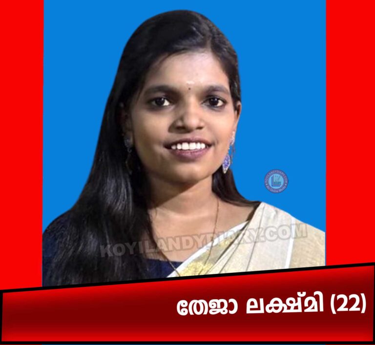 . കൊയിലാണ്ടി: ചെങ്ങോട്ടുകാവ് എളാട്ടേരി കല്ലേരി പൊയിൽ ബാബുവിൻ്റെ മകൾ തേജാ ലക്ഷ്മി (22) നിര്യാതയായി. അമ്മ: രഹന. സഹോദരി, നേഹ (നവോദയ വിദ്യാർത്ഥിനി).