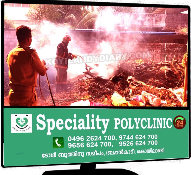 കൊയിലാണ്ടിയില് പറമ്പില് കൂട്ടിയിട്ട വിറകിനും അടിക്കാടിനും തീ പിടിച്ചു. കൊയിലാണ്ടി മുനിസിപ്പാലിറ്റി 41-ാം വാർഡിൽ സെയ്ദ് ഹാഷിം ബാഖഫി (വലിയത്ത് ബംഗ്ലാവ്, മുബാറക് റോഡ്) ഉടമസ്ഥതയിലുള്ള പറമ്പിലെ...