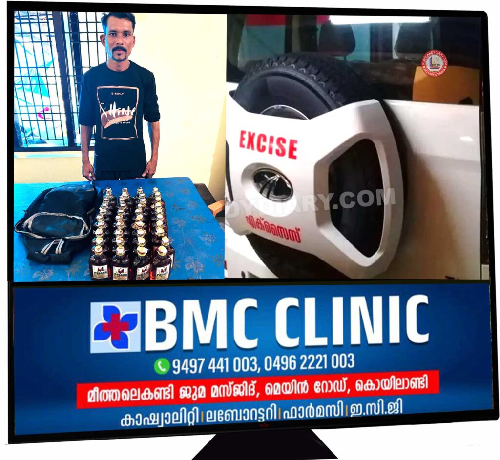 കൊളാവിപാലത്ത് കൊയിലാണ്ടി എക്സൈസ് സംഘം നടത്തിയ പരിശോധനയിൽ 7.2 ലി. മാഹി മദ്യം പിടികൂടി