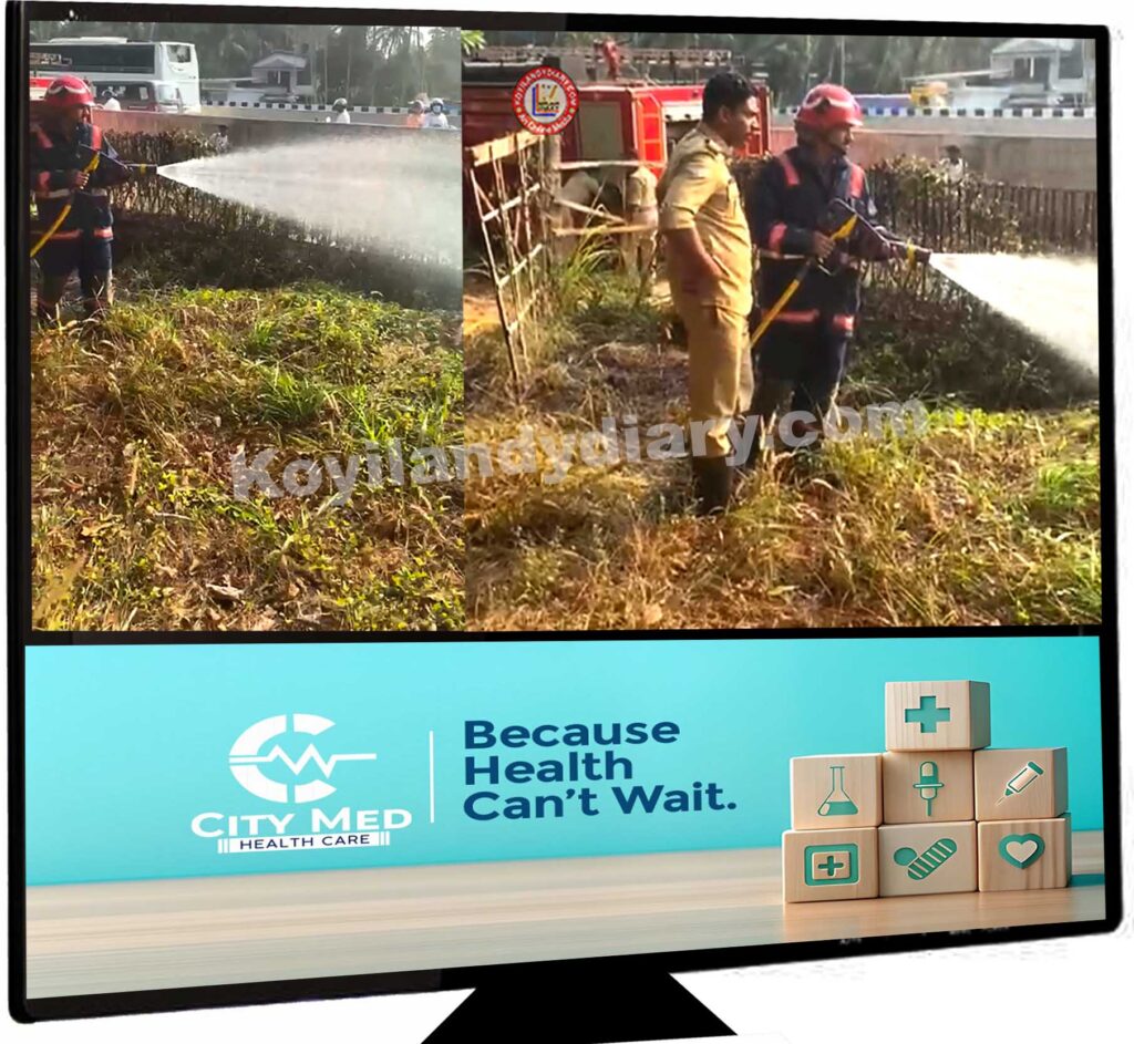 വിവരം കിട്ടിയതിന് തുടർന്ന് കൊയിലാണ്ടിയിൽ നിന്നും അഗ്നിരക്ഷാസേ എത്തി വെള്ളമൊഴിച്ച് തീ പൂർണമായും അണച്ചു. പറമ്പിന് മുകളിലൂടെ കൂടിപ്പോയ ഇലക്ട്രിക്കൽ ലൈനിൽ നിന്നുണ്ടായ തീപ്പൊരിയിൽ നിന്നും തീ പിടിക്കുകയായിരുന്നു. തൊട്ടടുത്ത് പാർക്ക് ചെയ്ത കാർ തീപിടുത്തത്തിൽനിന്ന് ഓഴിവായി.