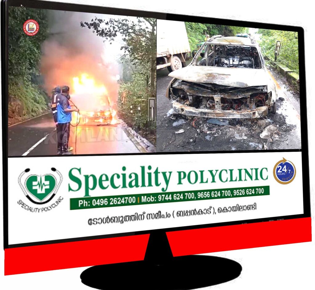 താമരശേരി ചുരത്തിൽ ഓടുന്ന കാറിന് തീപിടിച്ചു
