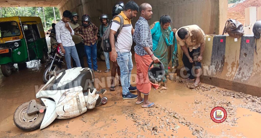 സമീപത്തുള്ളവർ ഓടിക്കൂടിയാണ് ചെളിയിൽ കുളിച്ച് കിടക്കുകയായിരുന്ന ഇരുവരെയും ഏറെ നേരത്തെ ശ്രമത്തിനൊടുവിൽ പുറത്തെത്തിച്ചത്. ചെളിയിൽ മുങ്ങിയ ഇവരെ നാട്ടുകാരുട സഹായത്തോടെ തൊട്ടടുത്ത വീട്ടിൽ എത്തിച്ച് വെള്ളംഉപയോഗിച്ച് കഴുകി വൃത്തിയാക്കിയശേഷമാണ് ആശുപത്രിയിൽ എത്തിച്ചത്. അണ്ടർപ്പാസിൻ്റെ അടിഭാഗത്തുകൂടി സഞ്ചരിക്കുന്ന വാഹനങ്ങൾ അപകടത്തിൽപ്പെടുന്നത് നിത്യ സംഭവമായിരിക്കുകയാണ്.