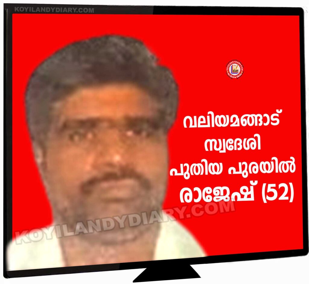 കൊയിലാണ്ടി വലിയമങ്ങാട് സ്വദേശിയെ ഏഴുകുടിക്കൽ ബീച്ചിൽ മരിച്ചനിലയിൽ കണ്ടെത്തി. വലിയമങ്ങാട് പുതിയ പുരയിൽ രവീന്ദ്രൻ്റെ മകൻ രാജേഷ് (52) നെയാണ് ഏഴുകുടിക്കൽ ക്ഷേത്രത്തിനു സമീപം ബീച്ചിൽ മരിച്ചനിലയിൽ കണ്ടെത്തിയത്. കടലിൽ ചാടിയതാണോ അബദ്ധത്തിൽ പറ്റിയതാണോ എന്നറിവായിട്ടില്ല.
