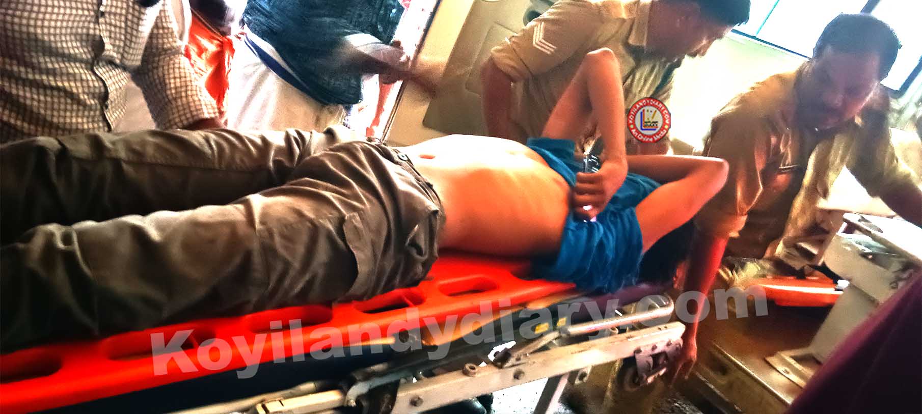 കൊയിലാണ്ടി മുത്താമ്പി റോഡിലെ അണ്ടർപ്പാസിനു മുകളിലെ വിടവിൽ യുവാവും ഇരുചക്ര വാഹനവും കുടുങ്ങി. ഫയർഫോഴ്സും നാട്ടുകാരും ചേർന്ന് യുവാവിനെ അത്ഭുതകരമായി രക്ഷപ്പെടുത്തി. തിക്കടി വരക്കത്ത് മൻസിൽ അഷറഫ് (20) ആണ് അപകടത്തിൽപ്പെട്ടത്. ഏറെ നേരത്തെ പരിശ്രമത്തിനൊടുവിൽ ഫയർഫോഴ്സും നാട്ടുകാരും ചേർന്ന് താഴെ ഇറക്കി കൊയിലാണ്ടി താലൂക്കാശുപത്രിയിൽ പ്രവേശിപ്പിച്ചു. ഇന്ന് വൈകീട്ട് 4.45 ഓടെയാണ് സംഭവം. നാട്ടുകാർ അറിയിച്ചതിനെ തുടർന്നാണ് ഫയർഫോഴ്സ കുതിച്ചെത്തി രക്ഷാ പ്രവനർത്തനത്തിന് നേതൃത്വം കൊടുത്തത്. ഉയരക്കൂടുതലുള്ളത്കൊണ്ട് ഒരു സ്വകാര്യ ബസ്സിന് മുകളിൽ കയറി ഏറെ നേരം പണിപ്പെട്ടാണ് യുവാവിനെ താഴെ ഇറക്കിയത്.