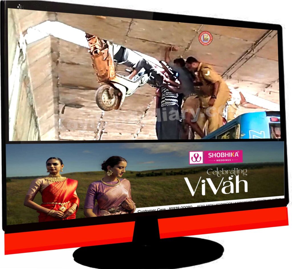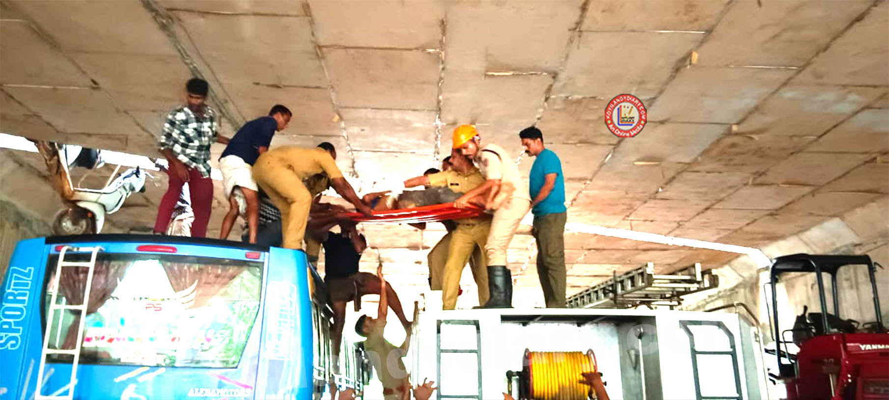 ഇരുചക്ര വാഹനത്തിൽ മേൽപ്പാലത്തുനു മുകളിലൂടെ സഞ്ചരിക്കവെ ഇരു സ്ലാബുകൾക്കിടയിലുള്ള വിടവിൽ വാഹനവും യുവാവും അകപ്പെടുകയായിരുന്നു. വാഹനവും യുവാവും വിടവിനടയിൽ സ്ലാബിനു താഴെയായി 30 മനുട്ടിലേറെ തൂങ്ങി കിടന്നു. യുവാവിൻ്റെ പരിക്ക് ഗുരുതരമല്ലെന്നാണ് അറിയുന്നത്.