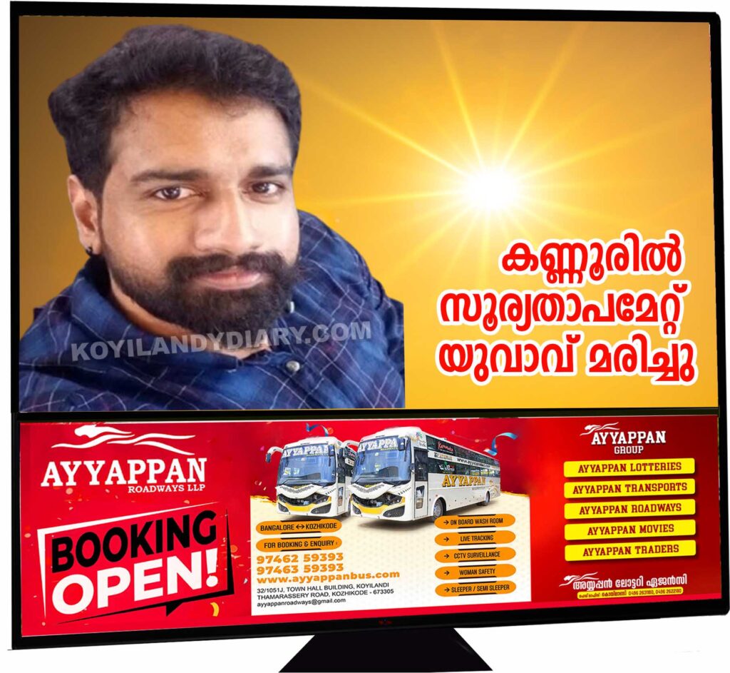 കണ്ണൂർ പള്ളിപ്പൊയില്‍ യുവാവ് സൂര്യാഘാതമേറ്റ് മരിച്ചു.