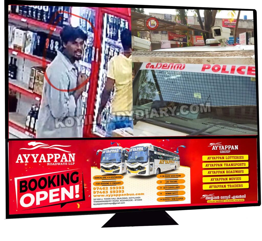 ബെവ്‌കോയുടെ സെല്‍ഫ് പ്രീമിയം കൗണ്ടറില്‍ നിന്നും 1,540 രൂപ വിലവരുന്ന മദ്യക്കുപ്പി മോഷ്ടിച്ച് യുവാവ്