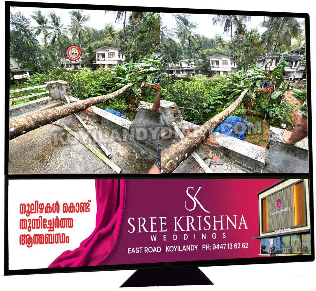 ശക്തമായ കാറ്റിൽ കണയങ്കോട് വീടിന് മുകളിൽ തെങ്ങ് കടപുഴകി വീണ് അപകടം