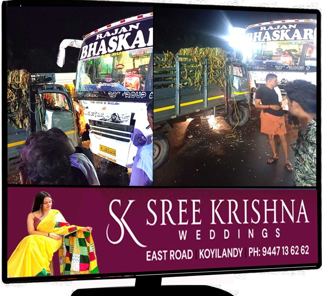 നന്തി മേല്പ്പാലത്തില് ബസ്സും പിക്കപ്പ് ലോറിയും കൂട്ടിയിടിച്ച് അപകടം: ഒരാള്ക്ക് പരിക്ക്