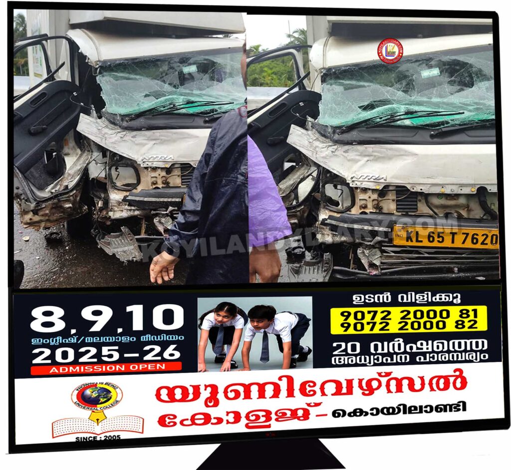 ചേമഞ്ചേരി പെട്രോൾ പമ്പിനു സമീപം സ്വകാര്യ ബസ്സ് പിക്കപ്പ് വാനിലിടിച്ച് അപകടം
