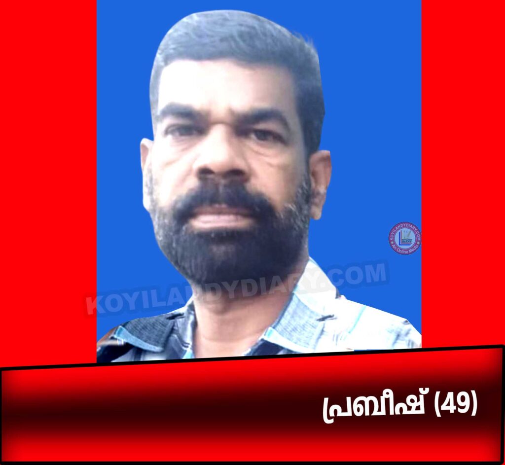 Koyilandy News Obituary അണേല കുരുന്നൻകണ്ടി പ്രബീഷ് (49) നിര്യാതനായി 3 hours ago koyilandydiary കൊയിലാണ്ടി: അണേല കുരുന്നൻകണ്ടി പ്രബീഷ് (49) നിര്യാതനായി. കുരുന്നൻകണ്ടി ഭാസ്ക്കരൻ്റെയും ശ്രീമതിയുടെയും മകനാണ്. ഭാര്യ: സബിത. മകൻ: ശ്രുതിൻ ലാൽ. സഹോദരങ്ങൾ: സന്തോഷ് കുമാർ പാനൂര്, ജയപ്രകാശൻ, പരേതരായ ശിവാനന്ദൻ, ശ്രീജൻ, ദിനേശൻ. Share news Post navigation Previous തൊഴിലുറപ്പ് തൊഴിലാളി കോൺഗ്രസ് സമ്മേളനം വിജയിപ്പിക്കാൻ തീരുമാനിച്ചുNext മലബാർ ദേവസ്വം ബോർഡിന്റെ കീഴിലുള്ള എല്ലാ ക്ഷേത്രങ്ങളിലും വിജിലൻസ് പരിശോധന വേണം