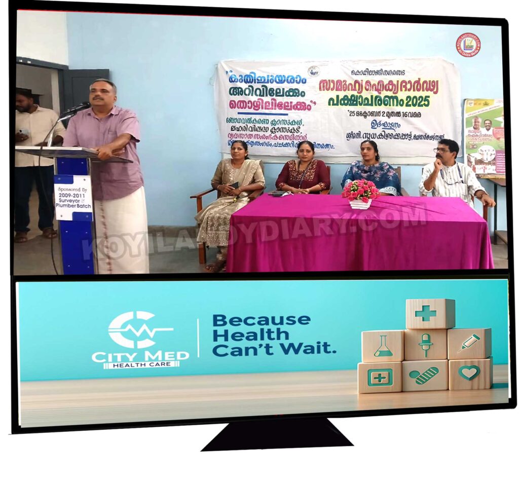 കൊയിലാണ്ടി നഗരസഭ പട്ടികജാതി വികസന ഓഫീസിൻ്റെ നേതൃത്വത്തിൽ സാമൂഹ്യ ഐക്യദാർഡ്യ പക്ഷാചരണം 2025ന്റെ ഭാഗമായി ഗവൺമെന്റ് ITI (SCDD) കുറുവങ്ങാട് വെച്ച് ലഹരി വിരുദ്ധ ബോധവത്കരണ ക്ലാസ് നടത്തി. നഗരസഭ ക്ഷേമകാര്യ സ്റ്റാന്റിംഗ് കമ്മറ്റി ചെയർമാൻ കെ. ഷിജു പരിപാടി ഉദ്ഘാടനം ചെയ്തു. നഗരസഭ പട്ടികജാതി വികസന ഓഫീസർ അനിത കുമാരി അദ്ധ്യക്ഷത വഹിച്ചു.