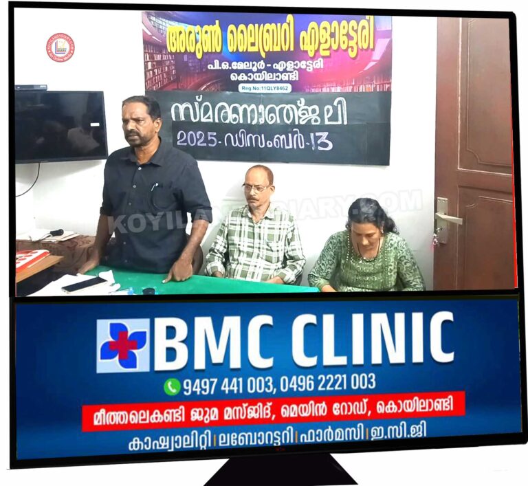 കൊയിലാണ്ടി: കുറുവങ്ങാട് 'സുകൃതി' അരുണിൻ്റെ 16-ാം ചരമ വാർഷിക ദിനത്തിൽ എളാട്ടേരി അരുൺ ലൈബ്രറി സ്മരണാഞ്ജലി അർപ്പിച്ചു. ലൈബ്രറി വനിതാവേദി പ്രസിഡണ്ട് റീന അധ്യക്ഷത വഹിച്ചു. സെക്രട്ടറി...