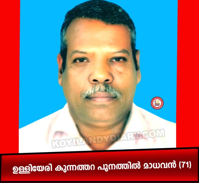 ഉള്ളിയേരി: ഉള്ളിയേരി കുന്നത്തറ പുനത്തിൽ (തൈക്കണ്ടി മീത്തൽ) മാധവൻ (71) നിര്യാതനായി. ഭാര്യ: തങ്കമണി. മക്കൾ: രജുല, രജനീഷ്, രഞ്ജിത്ത്. മരുമക്കൾ: അശോകൻ, പ്രിയ, കരിഷ്മ. സഹോദരൻ ബാലൻ.