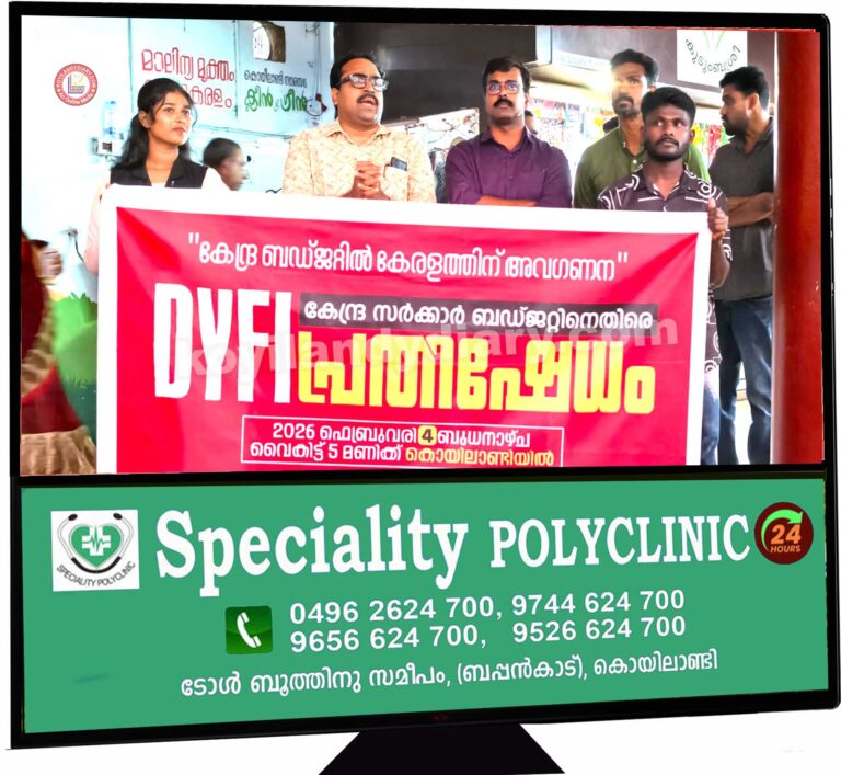 കൊയിലാണ്ടി: കേന്ദ്ര ബജറ്റിൽ കേരളത്തെ അവഗണിച്ചതിൽ പ്രതിഷേധിച്ച് DYFI കൊയിലാണ്ടി ബ്ലോക്ക് കമ്മിറ്റിയുടെ നേതൃത്വത്തിൽ പ്രതിഷേധ പ്രകടനം നടത്തി. ജില്ലാ സെക്രട്ടറി LG ലിജീഷ് ഉദ്ഘാടനം ചെയ്തു....