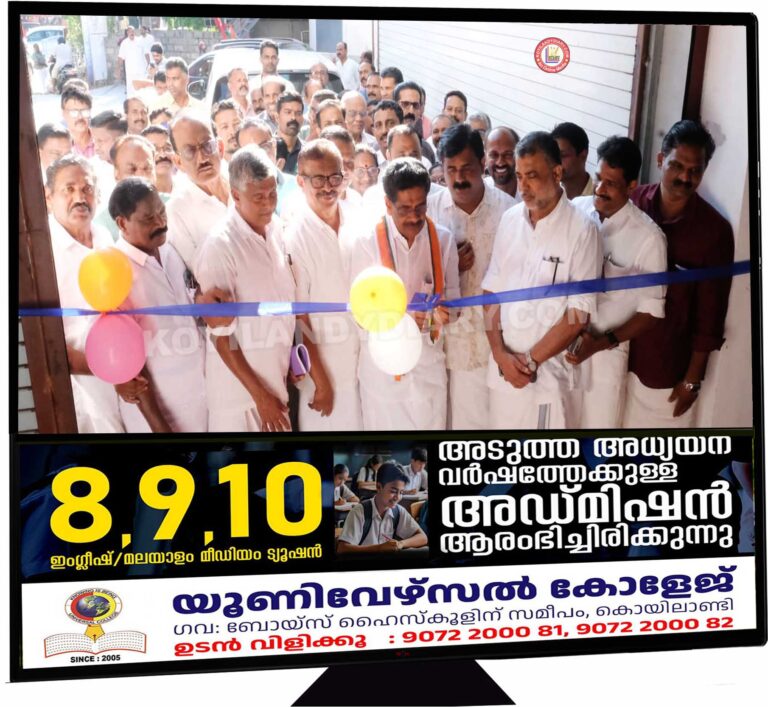 . കൊയിലാണ്ടി: യു.ഡി.എഫ്. കൊയിലാണ്ടി നിയോജക മണ്ഡലം തിരഞ്ഞെടുപ്പ് കമ്മിറ്റി ഓഫീസ് തുറന്നു. കെപിസിസിമുൻ അധ്യക്ഷൻ മുല്ലപ്പള്ളി രാമചന്ദ്രൻ ഉദ്ഘാടനം ചെയ്തു. 10 വർഷത്തെ ഇടത് ഭരണം...