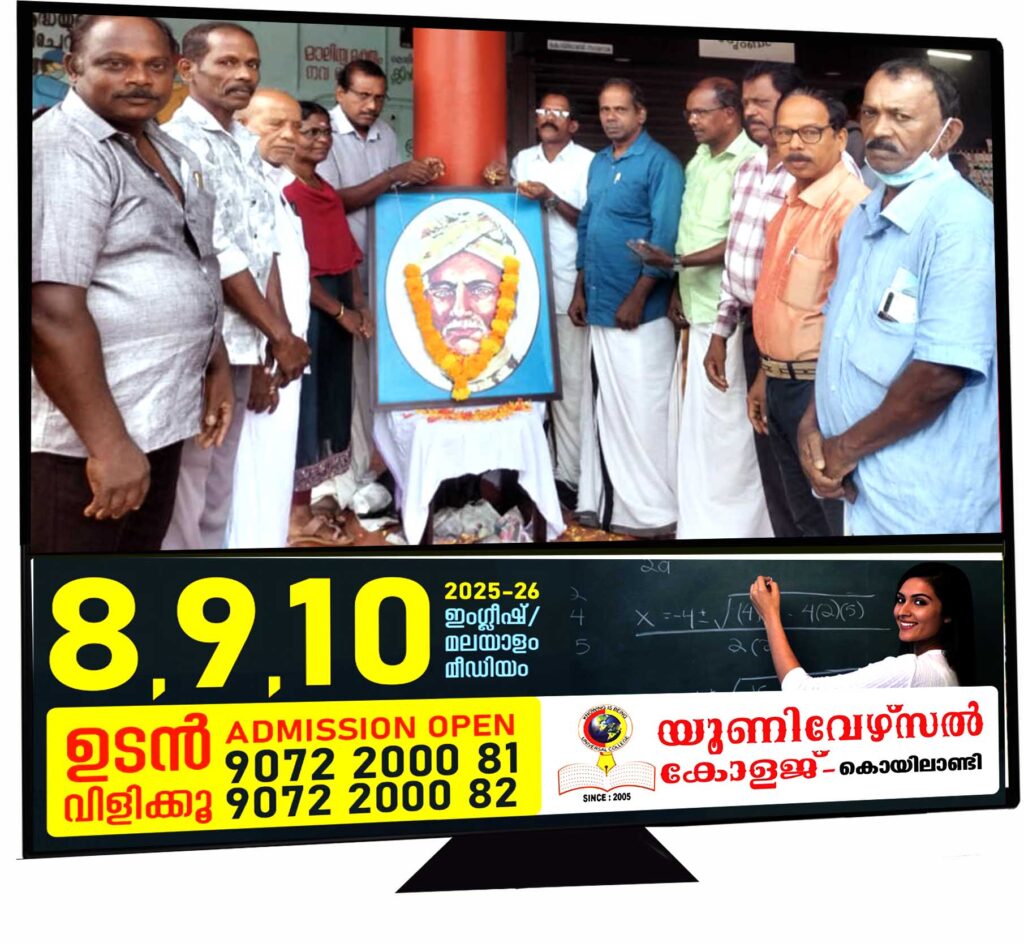 കൊയിലാണ്ടി: കേരളീയ പട്ടിക ജനസമാജം കോഴിക്കോട് ജില്ലാ കമ്മിറ്റി മഹാത്മാ അയ്യങ്കാളിയുടെ ചരമദിനം സമുചിതമായി ആചരിച്ചു. കൊയിലാണ്ടി ബസ്റ്റാന്റ് പരിസരത്ത് കാലത്ത് പുഷ്പാഞ്ജലി നടന്നു. തുടർന്ന് അനുസ്മരണയോഗം സംസ്ഥാന ജനറൽ സെക്രട്ടറി നിർമ്മല്ലൂർ ബാലൻ ഉദ്ഘാടനം ചെയ്തു. സംസ്ഥാന പ്രസിഡണ്ട് M M ശ്രീധരൻ മുഖ്യ പ്രഭാഷണം നടത്തി.