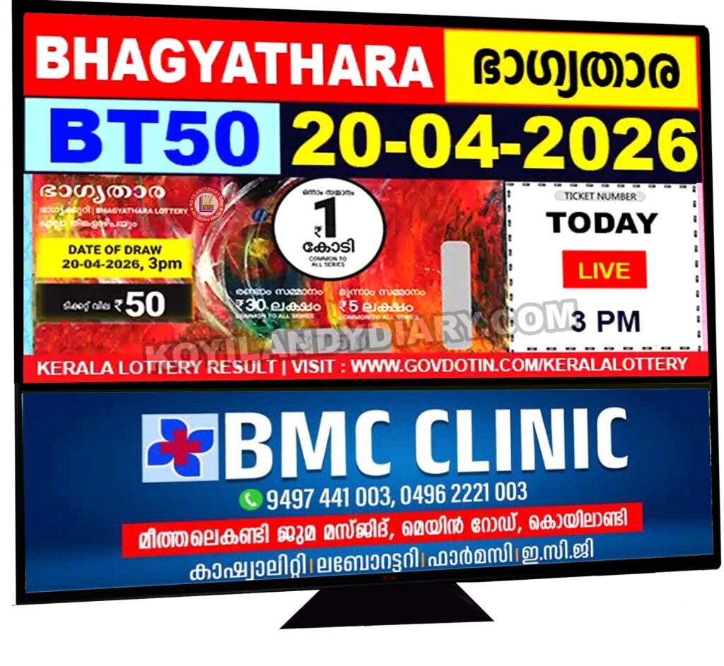 ഭാഗ്യതാര BT 50 ലോട്ടറി നറുക്കെടുപ്പ് ഇന്ന്