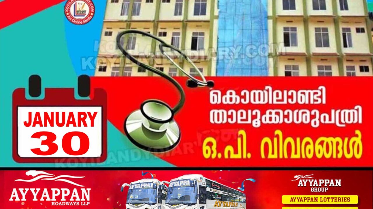 കൊയിലാണ്ടി താലൂക്ക് ആശുപത്രിയിൽ ഡിസംബർ 10 ബുധനാഴ്ചത്തെ ഒ.പി.യിൽ ലഭിക്കുന്ന സേവനങ്ങളെക്കുറിച്ചുള്ള വിവരങ്ങൾ. താലൂക്കാശുപത്രിയിൽ ഇ-ഹെൽത്ത് പദ്ധതിയുടെ ഭാഗമായി ഇനി മുതൽ OP ടിക്കറ്റ് എടുക്കാൻ വരുന്നവർ ആധാർ കാർഡ്,...