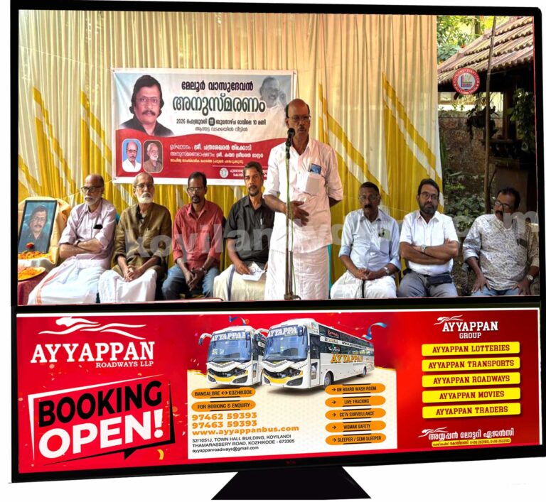 . കൊയിലാണ്ടി: കവിയും നോവലിസ്റ്റുമായ മേലൂർ വാസുദേവൻ്റെ ഒന്നാം ചരമ വാർഷികം ആചരിച്ചു. പുരോഗമന കലാസാഹിത്യ സംഘം കൊയിലാണ്ടി മേഖലാ കമ്മറ്റിയുടെ നേതൃത്വത്തിൽ ആന്തട്ട വടക്കയിൽ പുഷ്പാർച്ചനയക്കു...